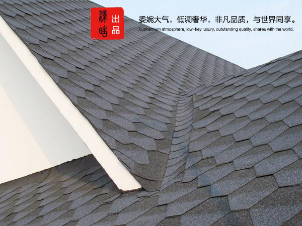 沥青瓦即沥青、填充料、加强毡和表面矿粒,表面的彩色天然矿石粒,保护沥青层免受阳光直射,使沥青不易老化,并丰富产品色彩;全天候改性防水沥青层可以长时间抵御风雨侵蚀;玻璃纤维垫基胎使瓦坚韧耐用;瓦底自带热熔黏胶,能使瓦片与下层瓦粘结在一起,保证屋面的整体性,防止透水。
