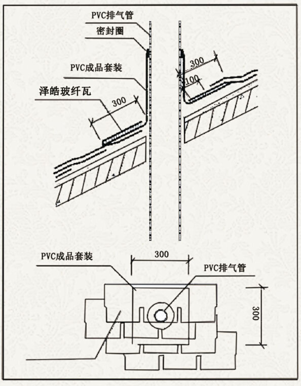 5:在套管周边100mm距离内瓦片背面都必须满涂沥青胶。
