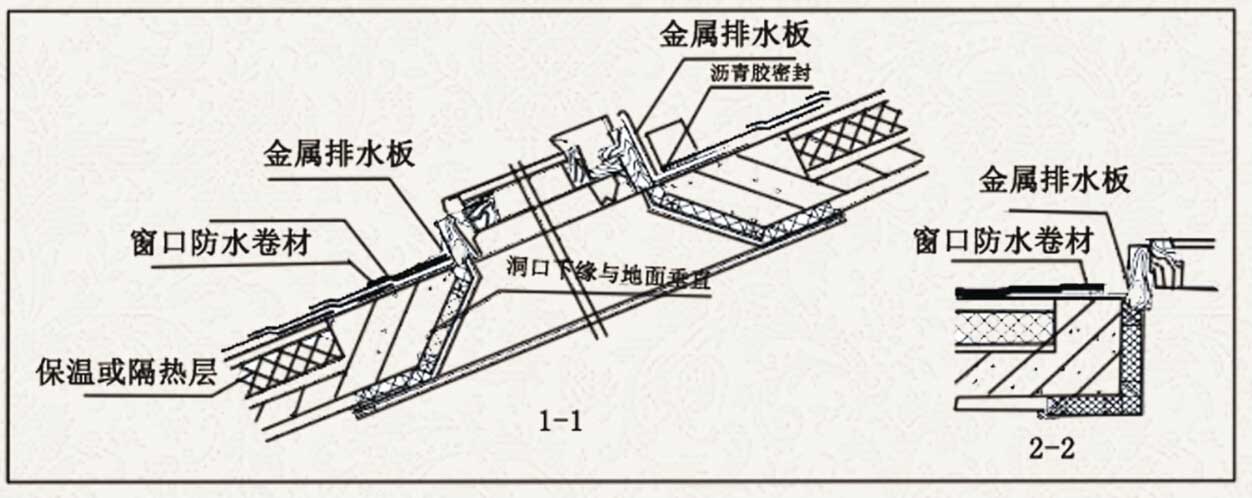 2:窗下坡方向的瓦应铺设在金属排水管下面,沿天窗上坡方向和两侧的瓦应覆盖在金属排