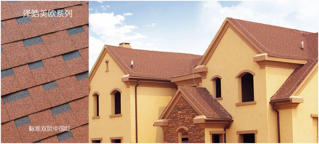 我国自己生产的彩色沥青瓦产品面市不久,随即在既有住宅屋面“平改坡”工程和新建坡屋面工程中进行试点应用,其产品质量不断提高,获得工程建设方的认可,由此改变了过去国内市场全部使用进口玻纤胎基的局面,“泽皓”牌彩色沥青瓦开始走向国外市场。