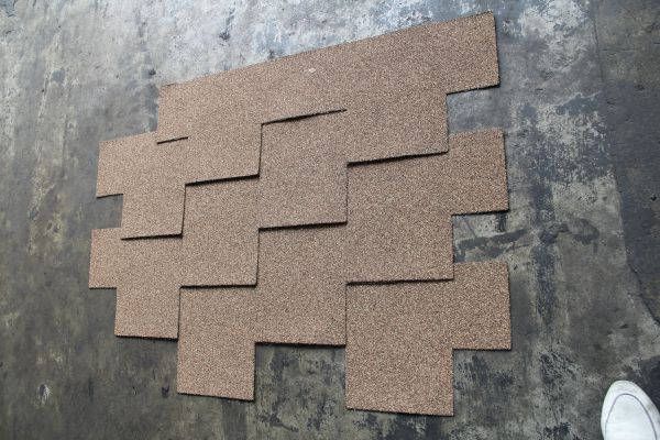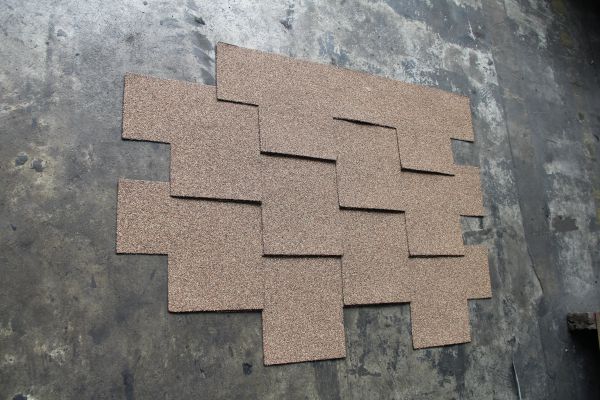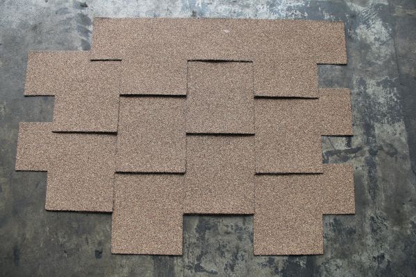 国产的彩砂细小,比较扁,不饱满,色泽相对暗淡,挤压成型之后,沥青瓦的质感缺失,颗粒紧密度和撒砂工艺有关,这里不做详解。进口彩砂颗粒饱满,色彩明度相对亮很多,由于颗粒大,挤压成型之后出现强烈的质感,对比看着就能感觉质感突出,拿在手中由于原本的厚实和质感叠加,更显得沥青瓦出奇的质感强烈。