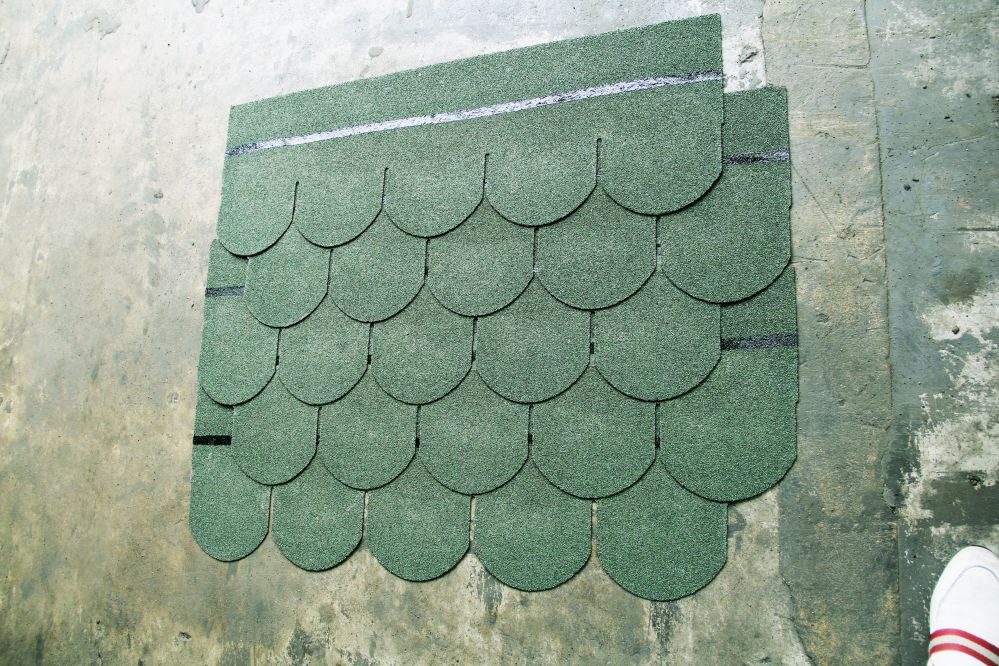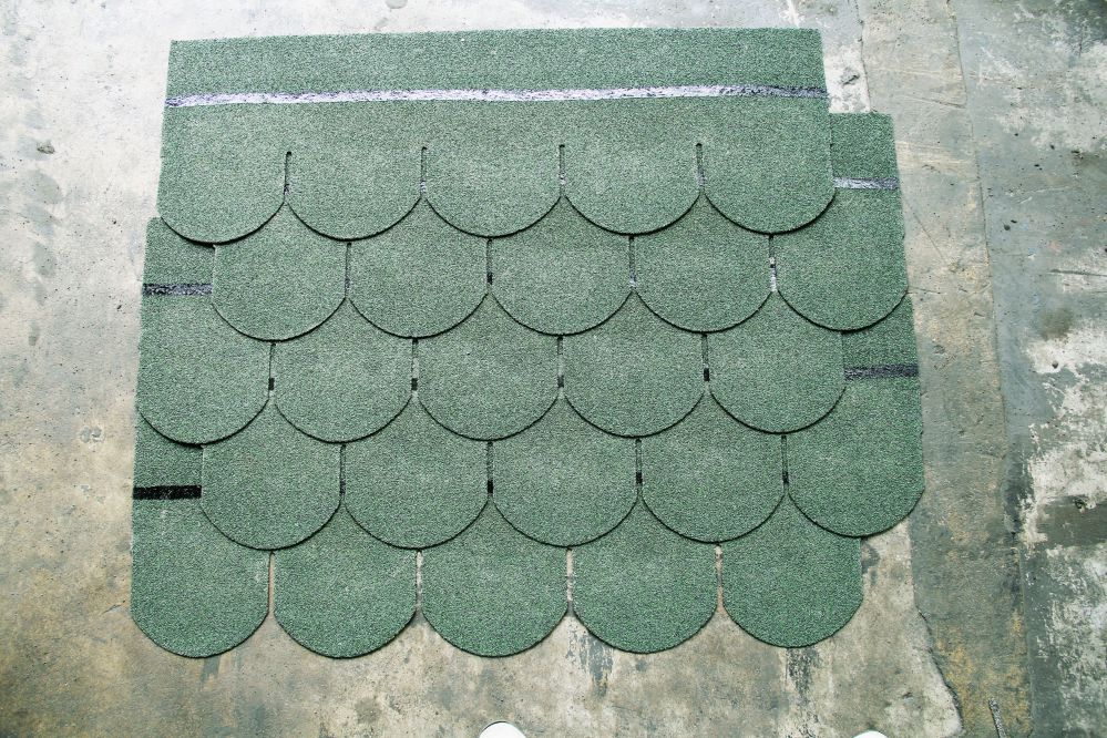 国产的彩砂细小,比较扁,不饱满,色泽相对暗淡,挤压成型之后,沥青瓦的质感缺失,颗粒紧密度和撒砂工艺有关,这里不做详解。进口彩砂颗粒饱满,色彩明度相对亮很多,由于颗粒大,挤压成型之后出现强烈的质感,对比看着就能感觉质感突出,拿在手中由于原本的厚实和质感叠加,更显得沥青瓦出奇的质感强烈。