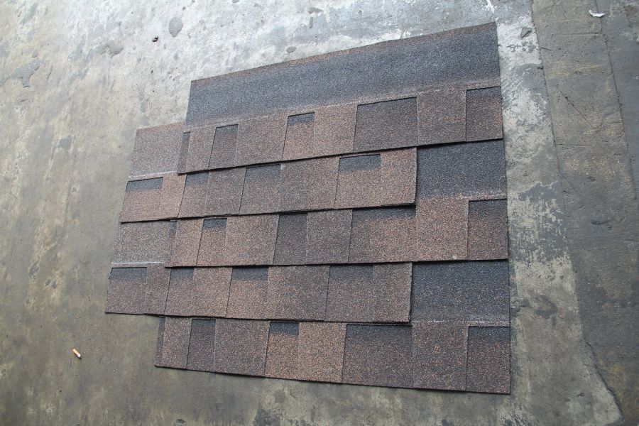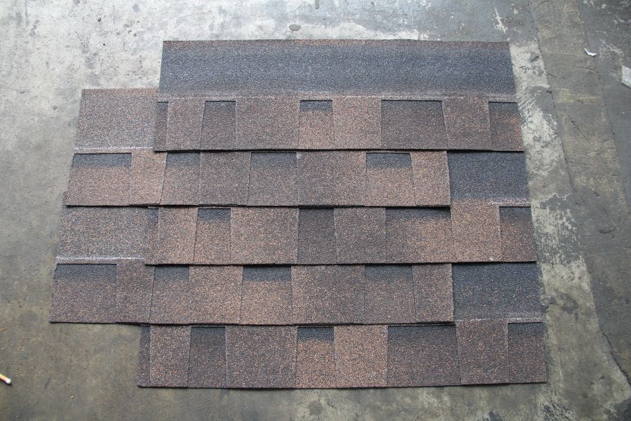 国产的彩砂细小,比较扁,不饱满,色泽相对暗淡,挤压成型之后,沥青瓦的质感缺失,颗粒紧密度和撒砂工艺有关,这里不做详解。进口彩砂颗粒饱满,色彩明度相对亮很多,由于颗粒大,挤压成型之后出现强烈的质感,对比看着就能感觉质感突出,拿在手中由于原本的厚实和质感叠加,更显得沥青瓦出奇的质感强烈。