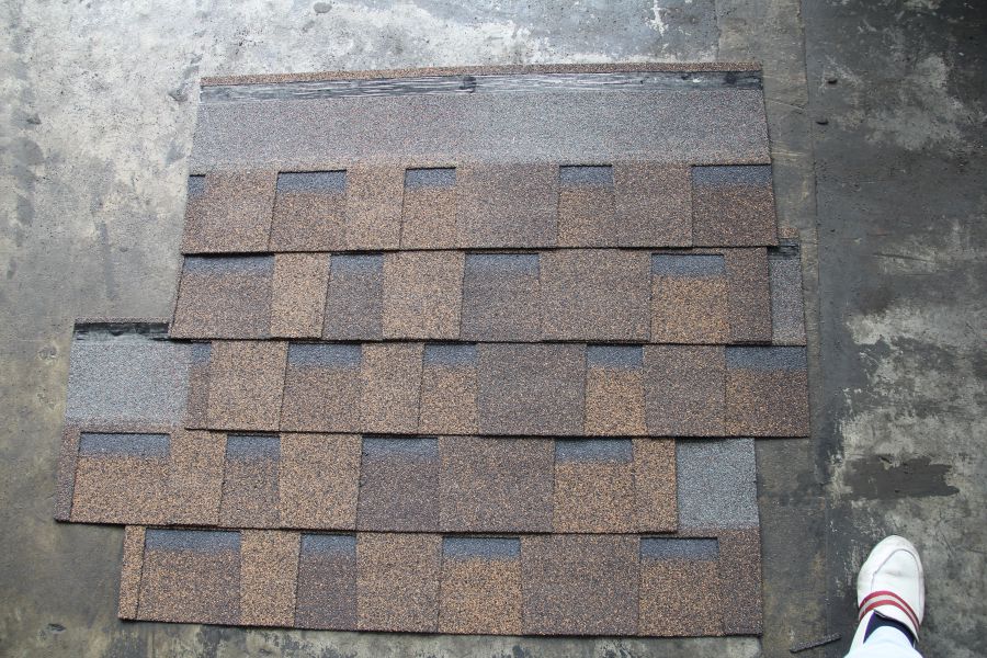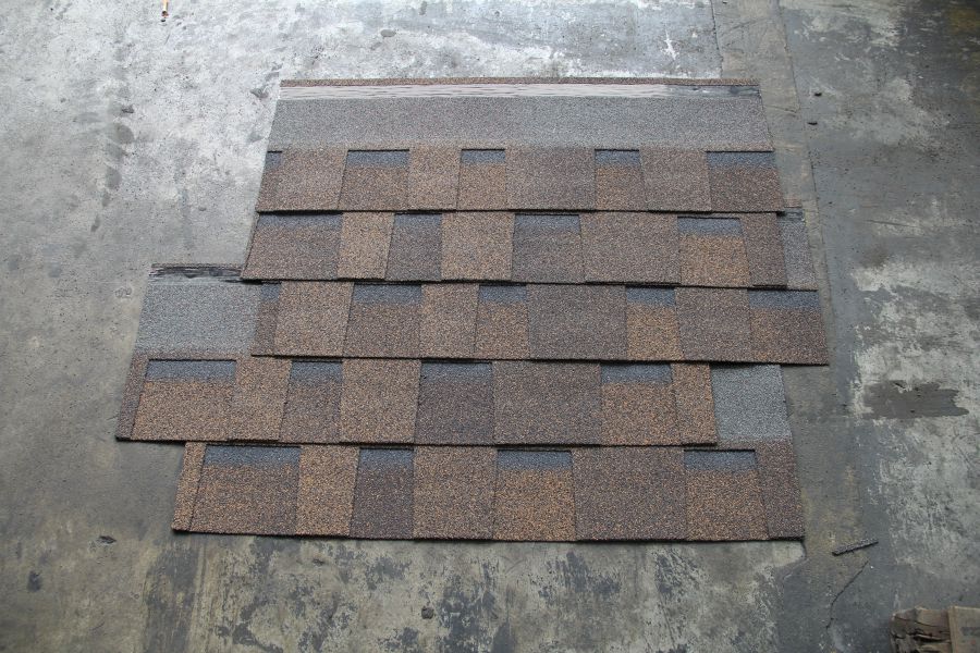 国产的彩砂细小,比较扁,不饱满,色泽相对暗淡,挤压成型之后,沥青瓦的质感缺失,颗粒紧密度和撒砂工艺有关,这里不做详解。进口彩砂颗粒饱满,色彩明度相对亮很多,由于颗粒大,挤压成型之后出现强烈的质感,对比看着就能感觉质感突出,拿在手中由于原本的厚实和质感叠加,更显得沥青瓦出奇的质感强烈。