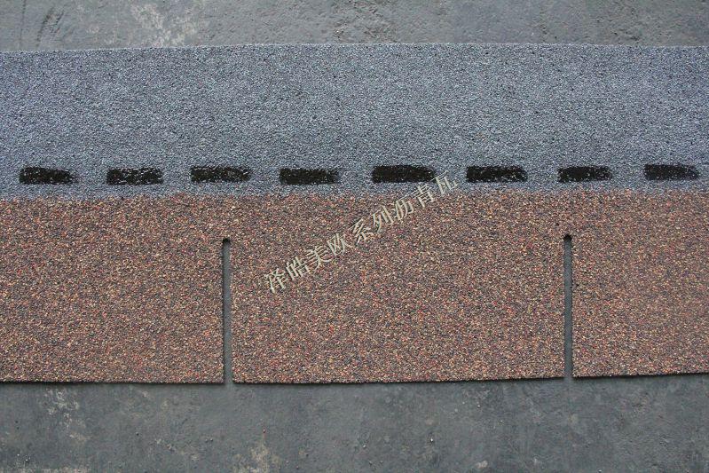 国产的彩砂细小,比较扁,不饱满,色泽相对暗淡,挤压成型之后,沥青瓦的质感缺失,颗粒紧密度和撒砂工艺有关,这里不做详解。进口彩砂颗粒饱满,色彩明度相对亮很多,由于颗粒大,挤压成型之后出现强烈的质感,对比看着就能感觉质感突出,拿在手中由于原本的厚实和质感叠加,更显得沥青瓦出奇的质感强烈。