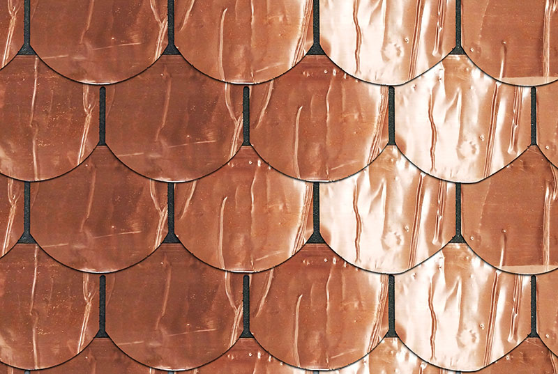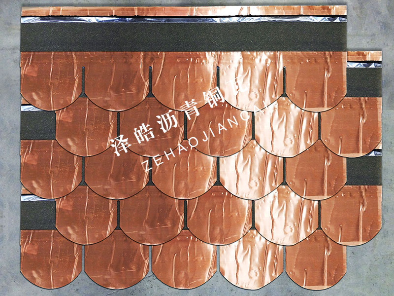 几个世纪以来,铜的使用可追溯到后中世纪的中欧,它是财富、尊贵的象征。基于铜本身良好的可塑性、延展性、导电性、抗腐蚀性能和抗菌性能,它被越来越多的设计师和开发商运用于建筑屋顶及外墙装饰。铜为建筑设计提供了无限的空间。泽皓铜瓦系列产品是一种经特殊工艺多层高压复合而成的铜板面层沥青瓦它可以用于屋顶覆盖,也可用于建筑外立面的装饰,应用十分广泛。