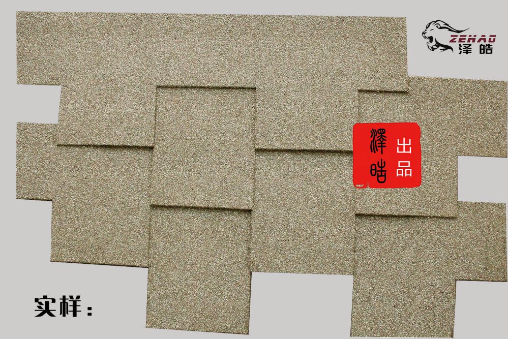 泽皓幻影系列产品均采用江苏江阴迎宾采砂覆盖,是目前国内一流的彩砂厂,采砂颗粒相对于美欧系列的彩砂来说颗粒小一点,是烧结彩砂,950°以上的高温瓷烤而成。