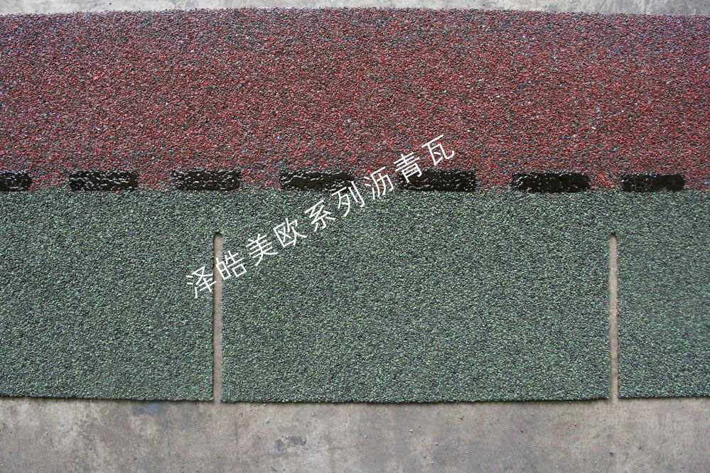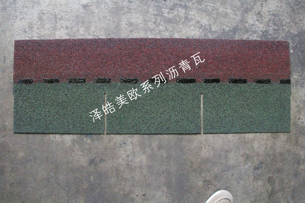 4、 防尘自洁性:瓷烤颗粒经过防静电处理,不吸附灰尘,因此泽皓玻纤瓦屋面不会积灰而形成明显的污斑,即使在长期雨淋的条件下也不会积留水渍。